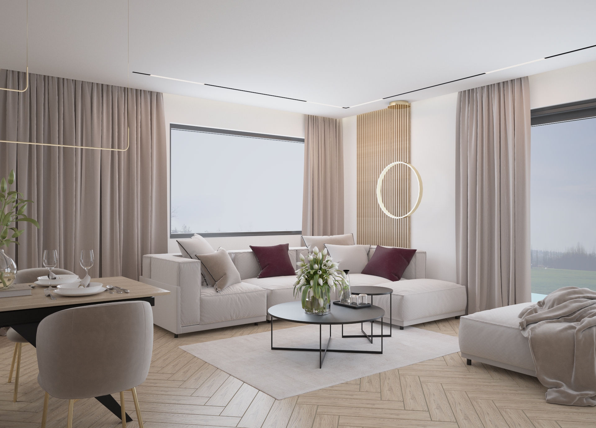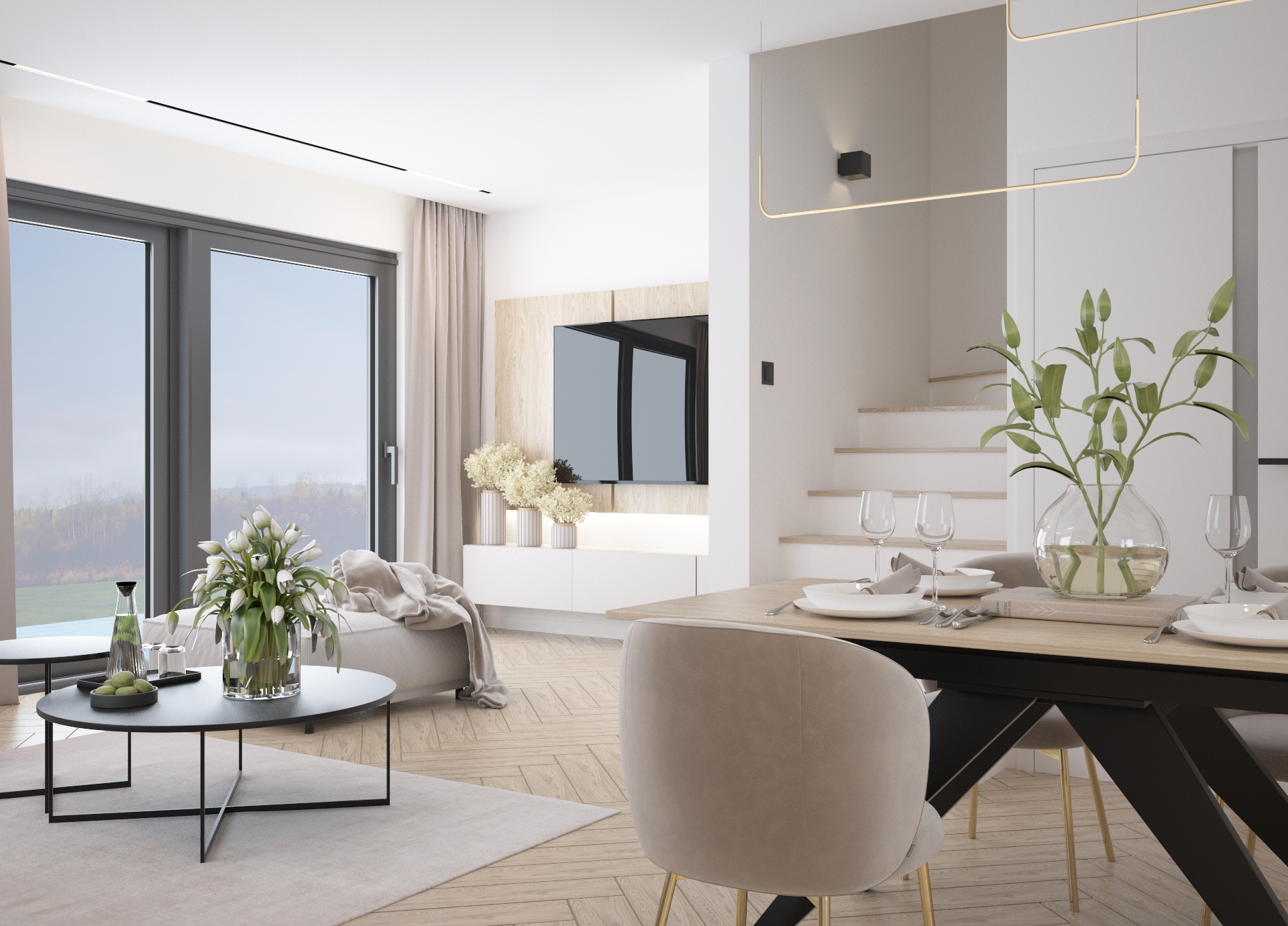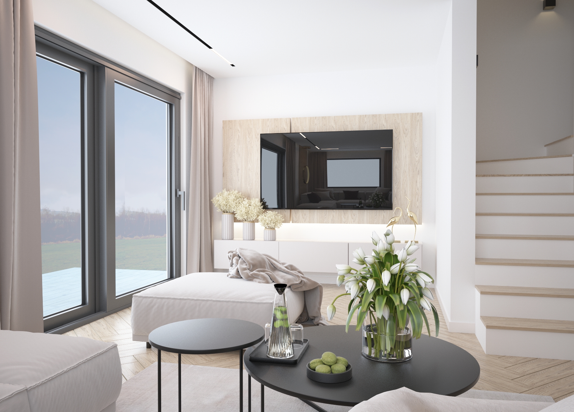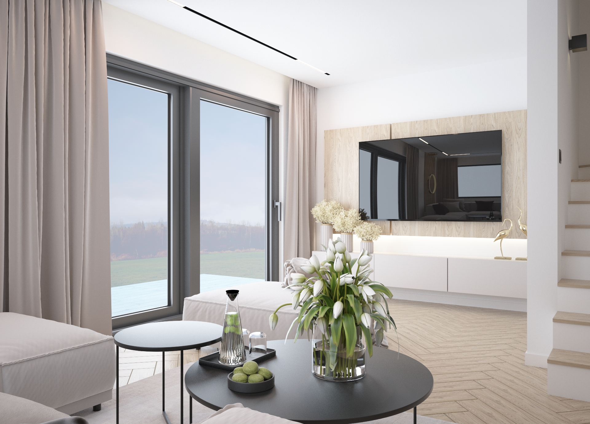 Niezależnie od pory roku, relaksując się w salonie, mieszkańcy mają wrażenie jakby przebywali gdzieś na łonie natury, słyszeć śpiew ptaków czy szelest roślin, poczuć zapach kwiatów lub deszczu. A gdy mamy już dość można zamknąć okna, spuścić rolety a barierą przed czynnikami zewnętrznymi zapewni na rekuperacja. W takim domu najlepiej się odpoczywa i regeneruje siły przez cały rok.